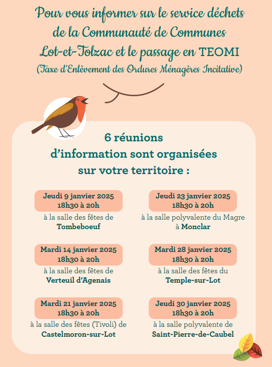 Après plusieurs années de réflexions, une délibération prise en juillet 2022 et un travail conséquent de préparation mené sur les années 2023 et 2024, le projet TEOMI (Taxe d’Enlèvement des Ordures Ménagères Incitative) se concrétise en 2025 à la Communauté de Communes Lot et Tolzac.
